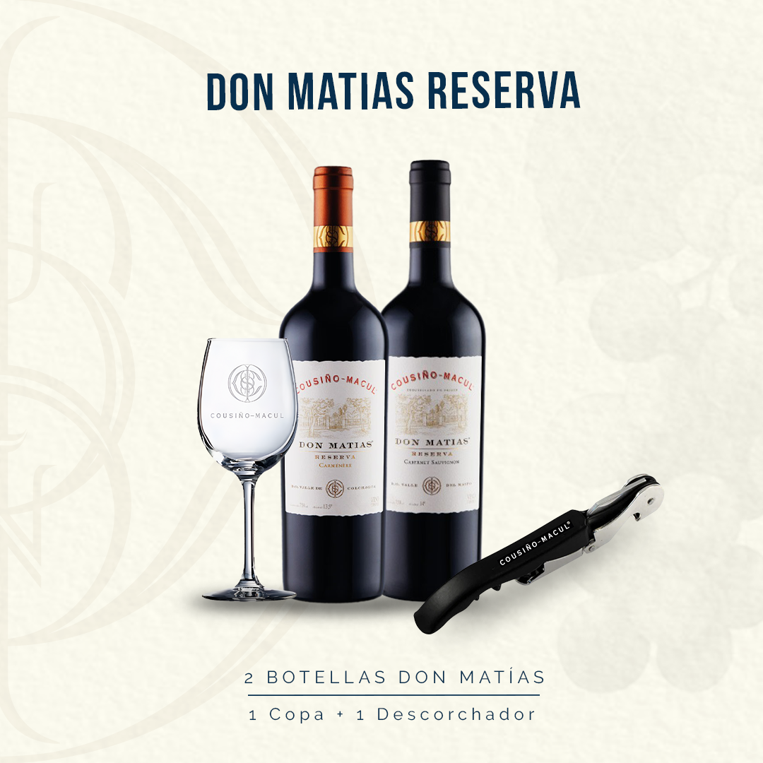 Incluye 2 botellas Don Matías a elección + 1 Copa de Vino + 1 Descorchado
